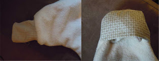 Links: zelfgemaakt tirretje, Rechts: de voetjes van het zeehondjes trampelzakje